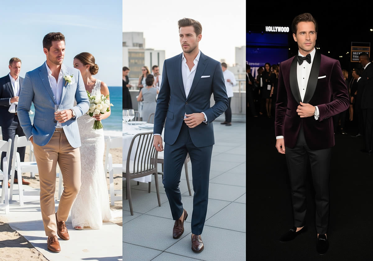 The beauty of LA is the weather, but it also makes fabric choice important. The city stays warm most of the year, with plenty of outdoor events, so you’ll want suits that breathe well and keep you comfortable.