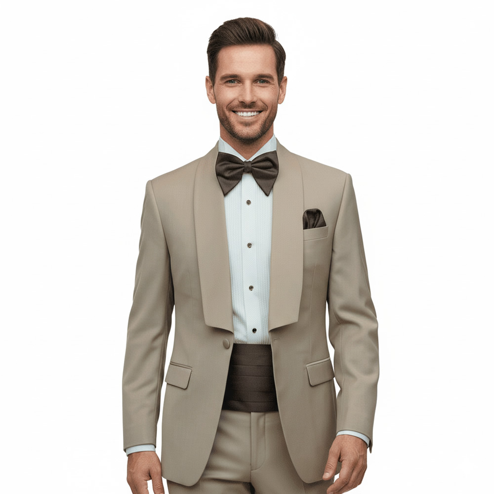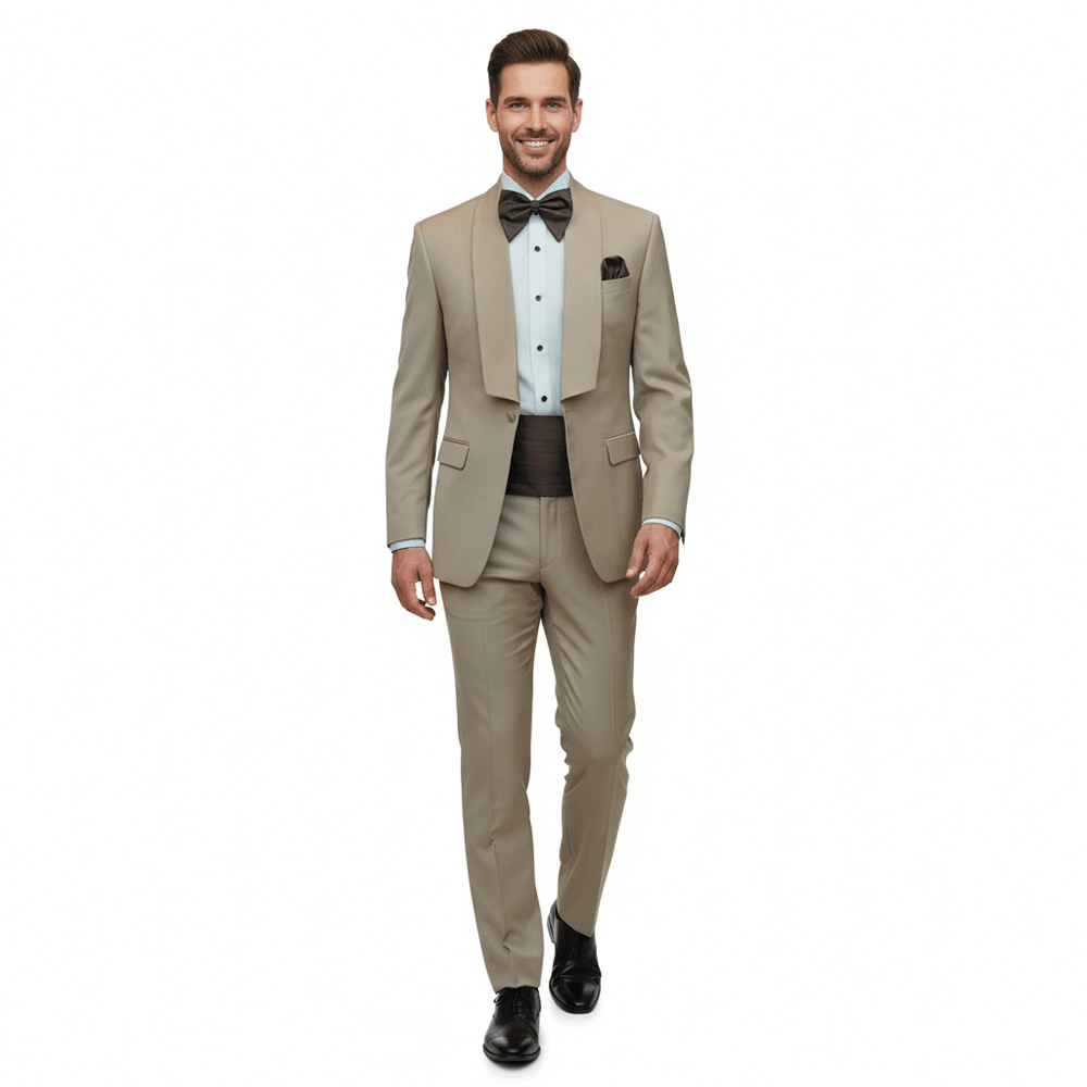 Step into the spotlight with this expertly tailored beige tuxedo, designed to make a lasting impression at proms and formal events. Crafted from premium 120s fabric, it delivers a lightweight and breathable feel, making it perfect for all seasons.