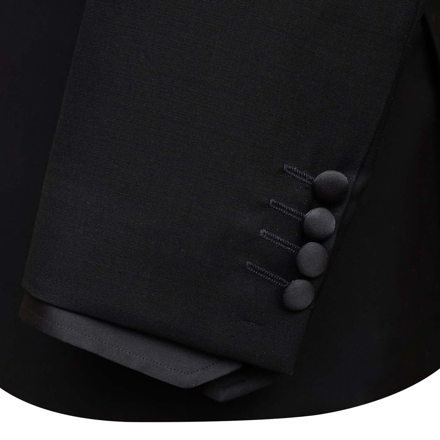 The Custom textured black tuxedo will be hand-stitched to your measurements. Made from Italian fabrics, using half-canvas construction, the textured tuxedo is guaranteed to be a staple in your wardrobe for years to come. The custom fit and exquisite fabric will accentuate your personality, while the tuxedo’s custom peak lapel will command authority and add a touch of sophistication to an already classic menswear piece.