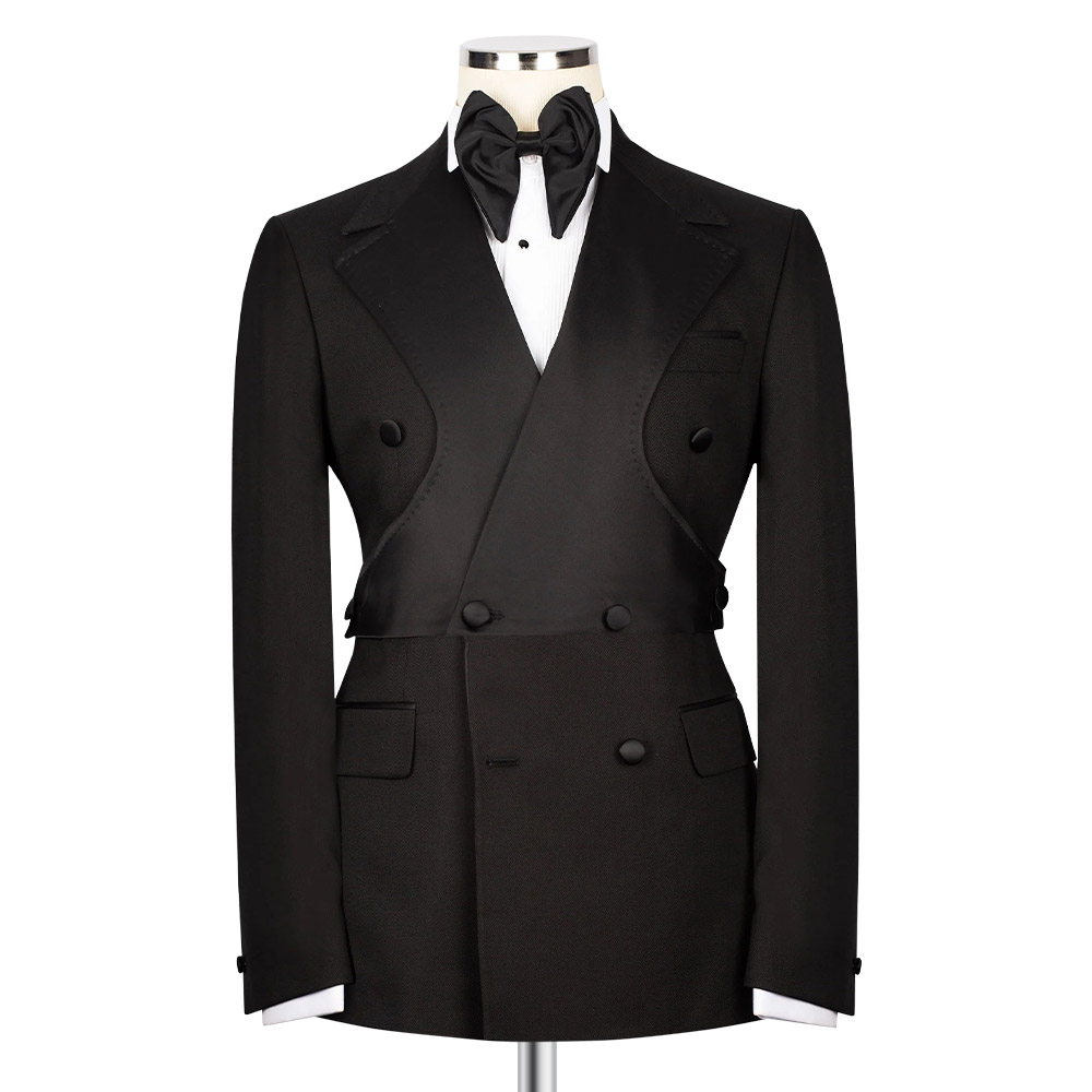 Experience an elevated level of confidence and sophistication with the custom textured black tuxedo, skillfully crafted to fit your distinct body shape using the most comfortable and durable fabrics and expert hand-stitching. Upgrade your formal wardrobe today by either purchasing the tuxedo as-is or personalizing it to your own style options to achieve a truly unique appearance.