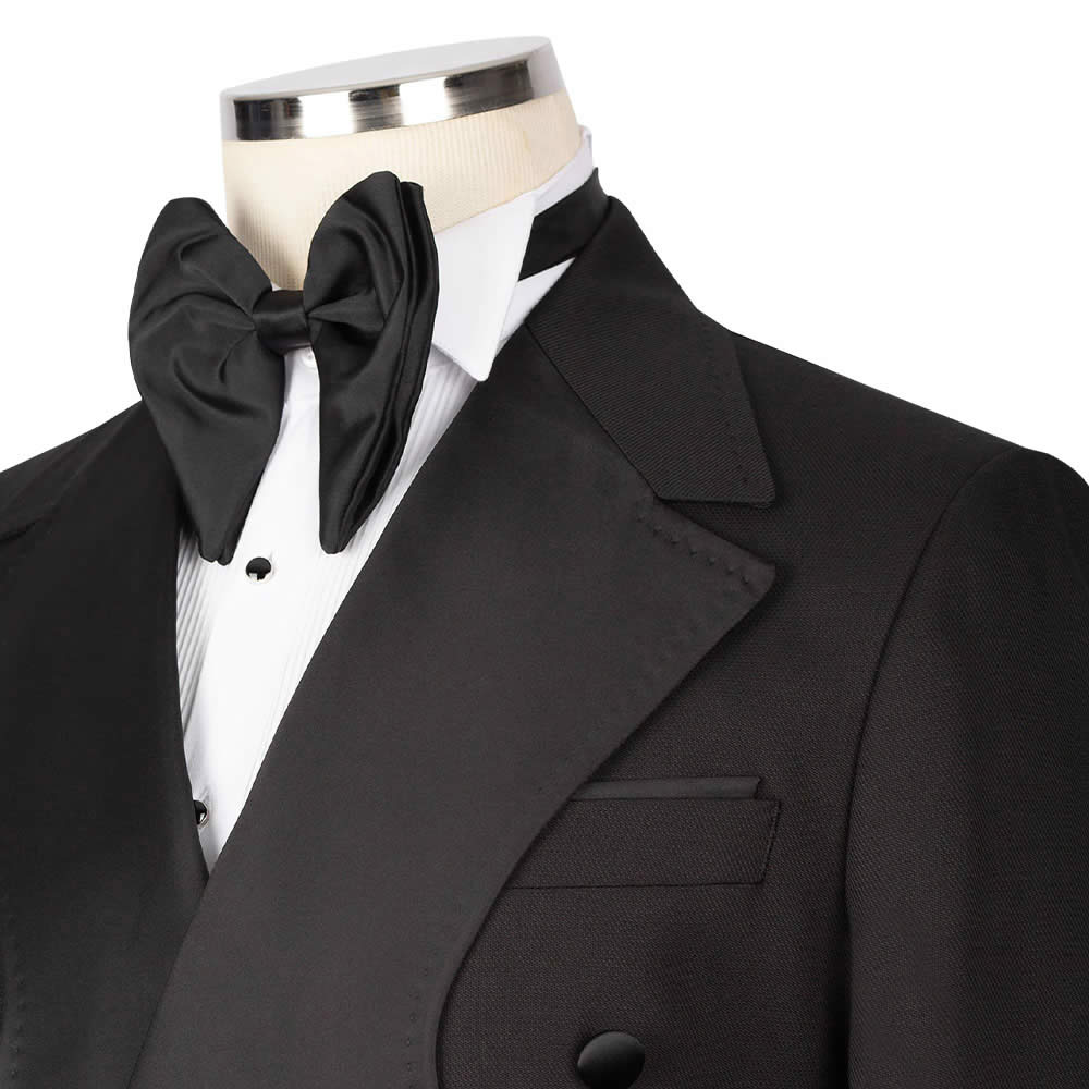 The Custom Black Birdseye Tuxedo Suit: where style meets savings. Order today for zero shipping costs. Dress smart, look sharp!