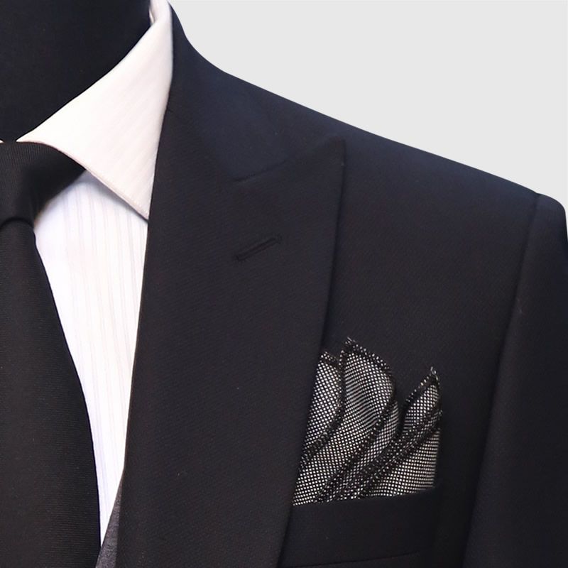 Our tailors will stitch the bespoke black suit with charcoal waistcoat exactly to your measurements; using traditional, Italian fabrics and half-canvassed construction. The resulting garment will be durable, highlighted by the exquisite fabrics and superior fit as per your requirements.