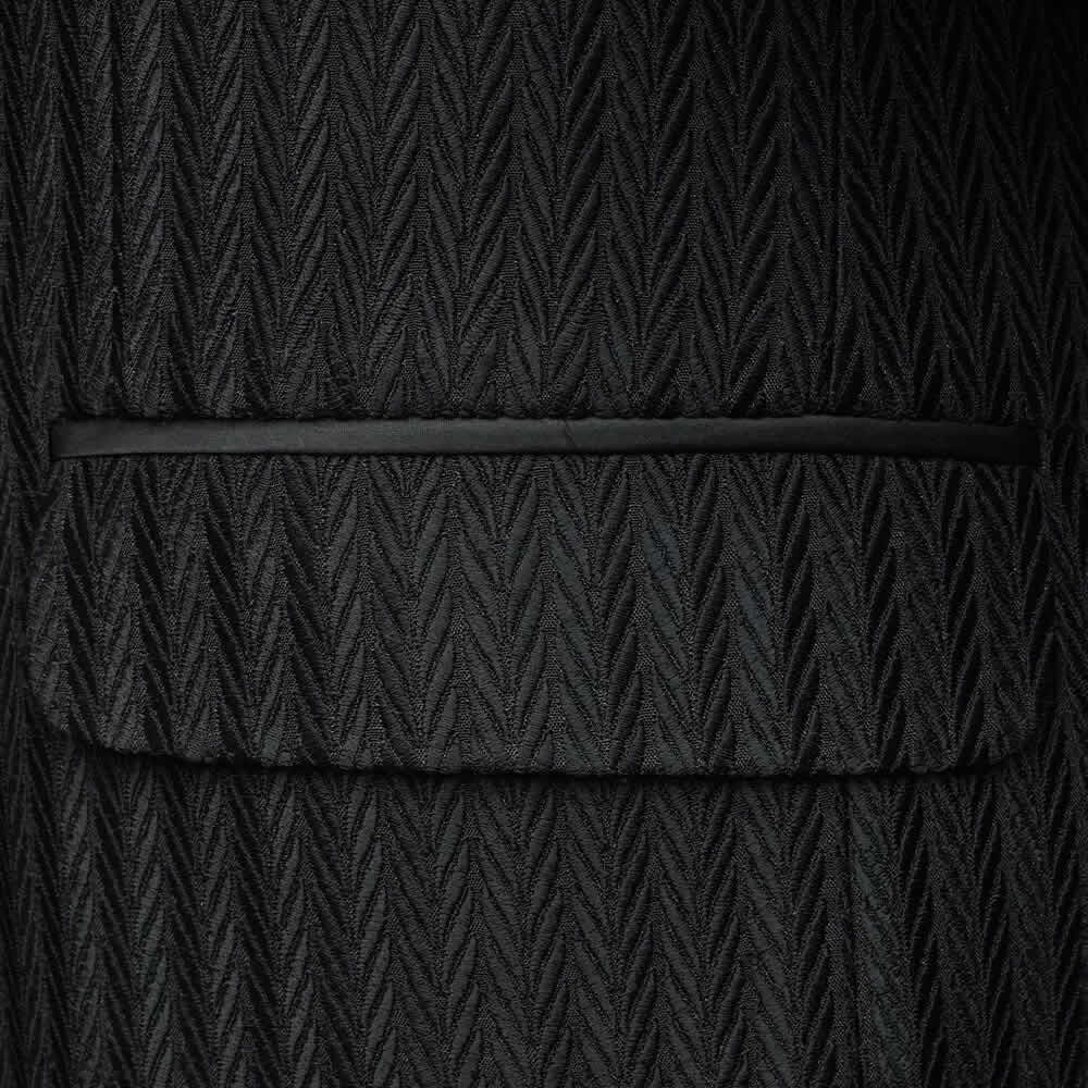 Experience an elevated level of confidence and sophistication with the custom textured black tuxedo, skillfully crafted to fit your distinct body shape using the most comfortable and durable fabrics and expert hand-stitching. Upgrade your formal wardrobe today by either purchasing the tuxedo as-is or personalizing it to your own style options to achieve a truly unique appearance.