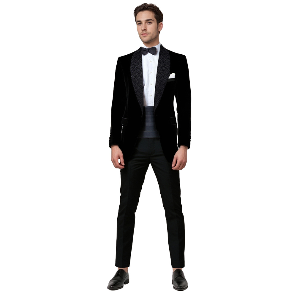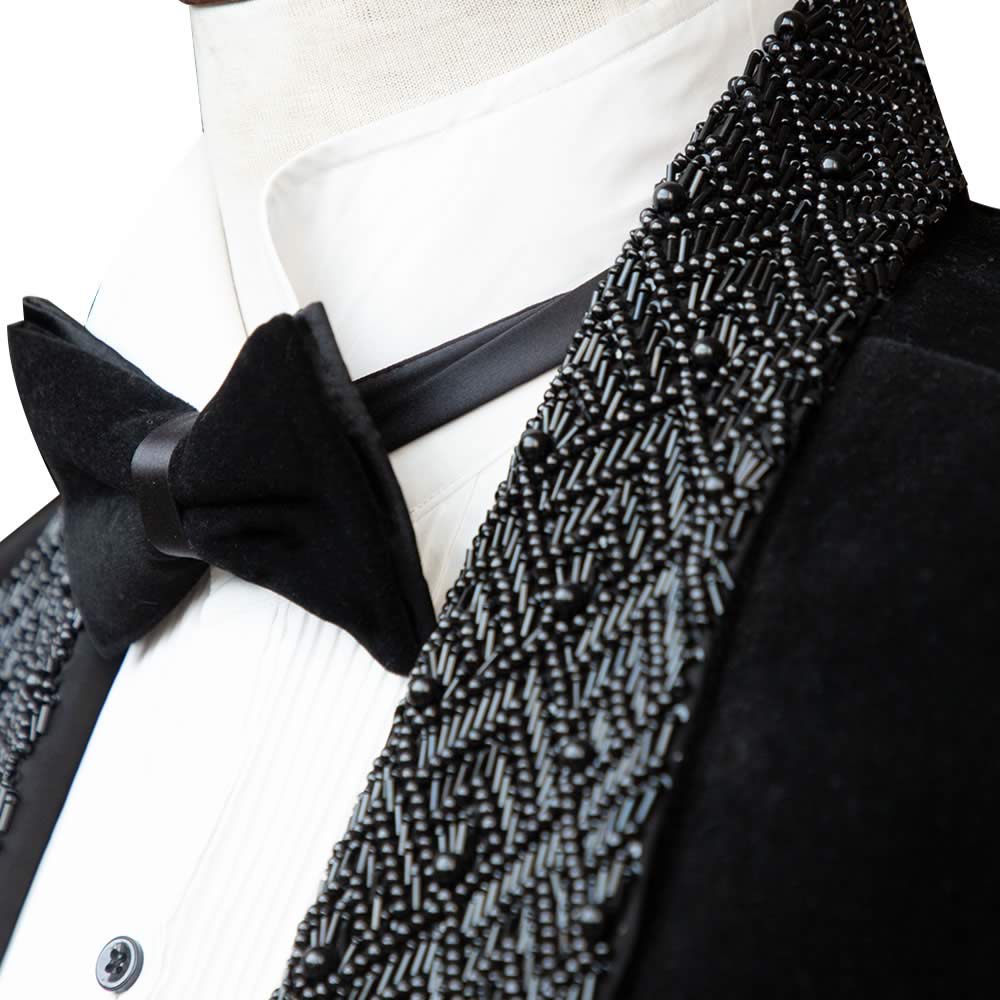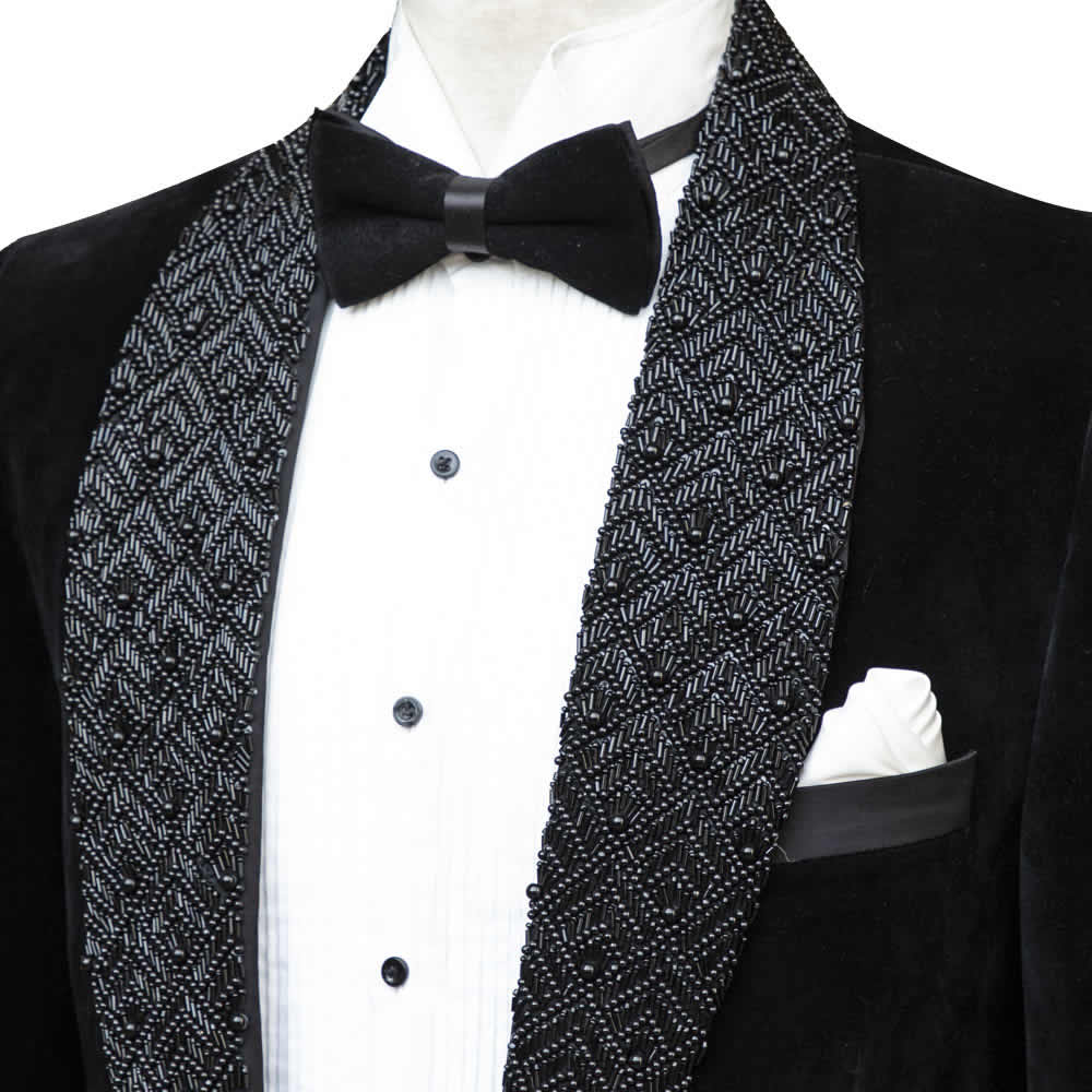 Step into the spotlight with our exclusive Black Velvet Tuxedo, adorned with eye-catching crystal bead details for an extra touch of elegance. This tuxedo combines the timeless charm of velvet with a hint of sparkle, perfect for making a statement at any high-end event.