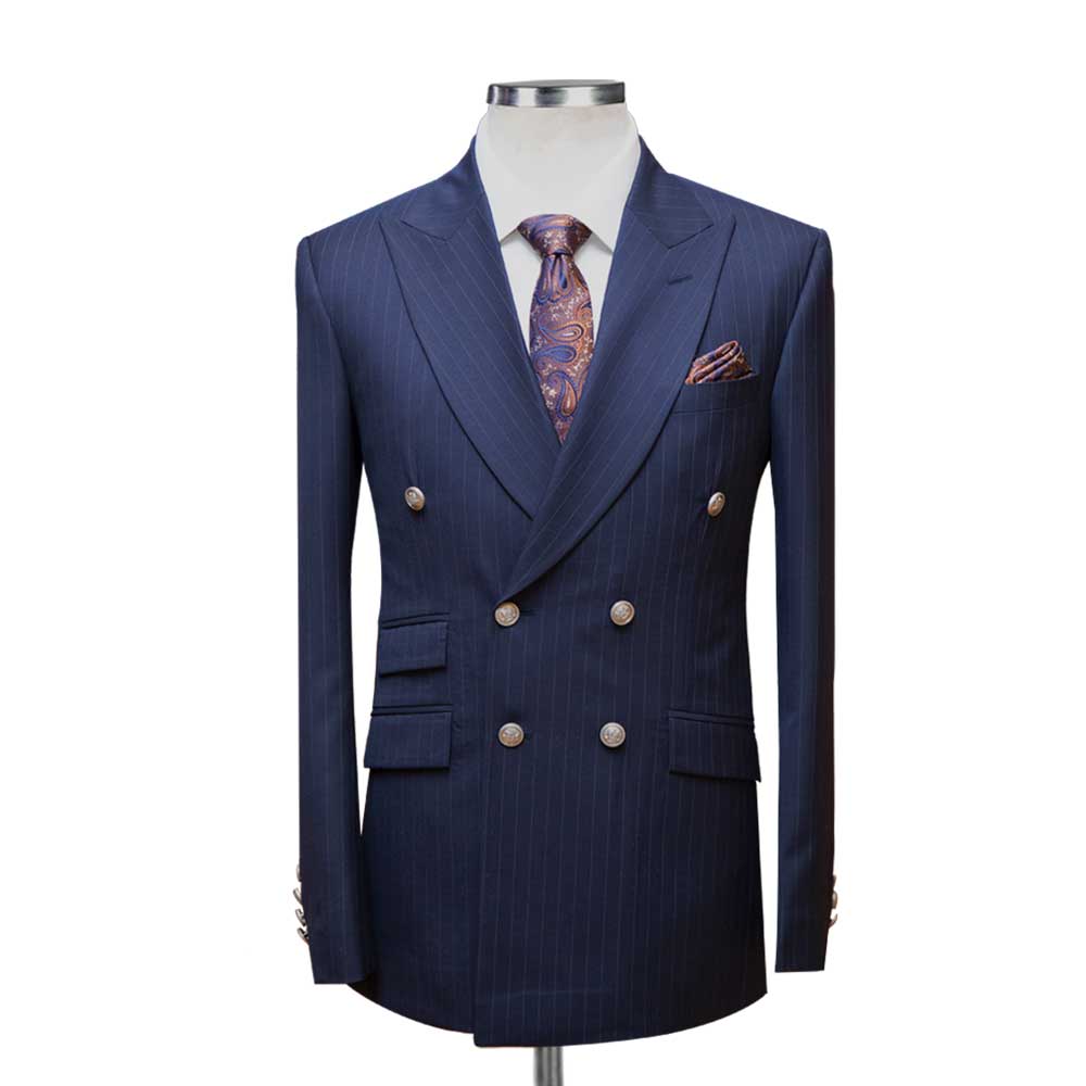 Discover sartorial elegance with our Blue Double Breasted Suit With Striped, a perfect blend of timeless design and modern craftsmanship. This suit comes with a white stripe that adds a touch of luxury to your wardrobe. It’s an ideal choice for those who desire all-season wearability and a refined aesthetic.