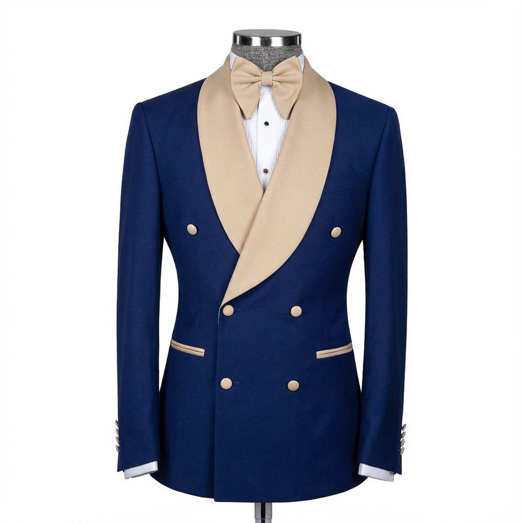 The Custom Deep Blue Tuxedo with Shawl Lapel is a masterpiece that seamlessly blends timeless elegance with a touch of luxurious sophistication. Meticulously handcrafted by our skilled artisans, this tuxedo is a testament to our unwavering commitment to impeccable craftsmanship. The deep blue hue exudes an air of refinement and versatility, making it a perfect choice for a range of formal occasions. The highlight of this tuxedo is the exquisite shawl lapel, adding a touch of opulence and enhancing the overall sophistication of the ensemble. The smooth and lustrous texture of the satin lapel is a testament to the finest craftsmanship and attention to detail.