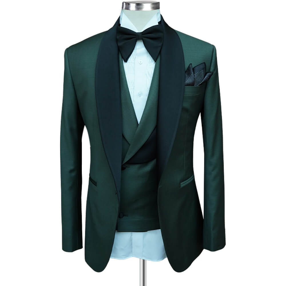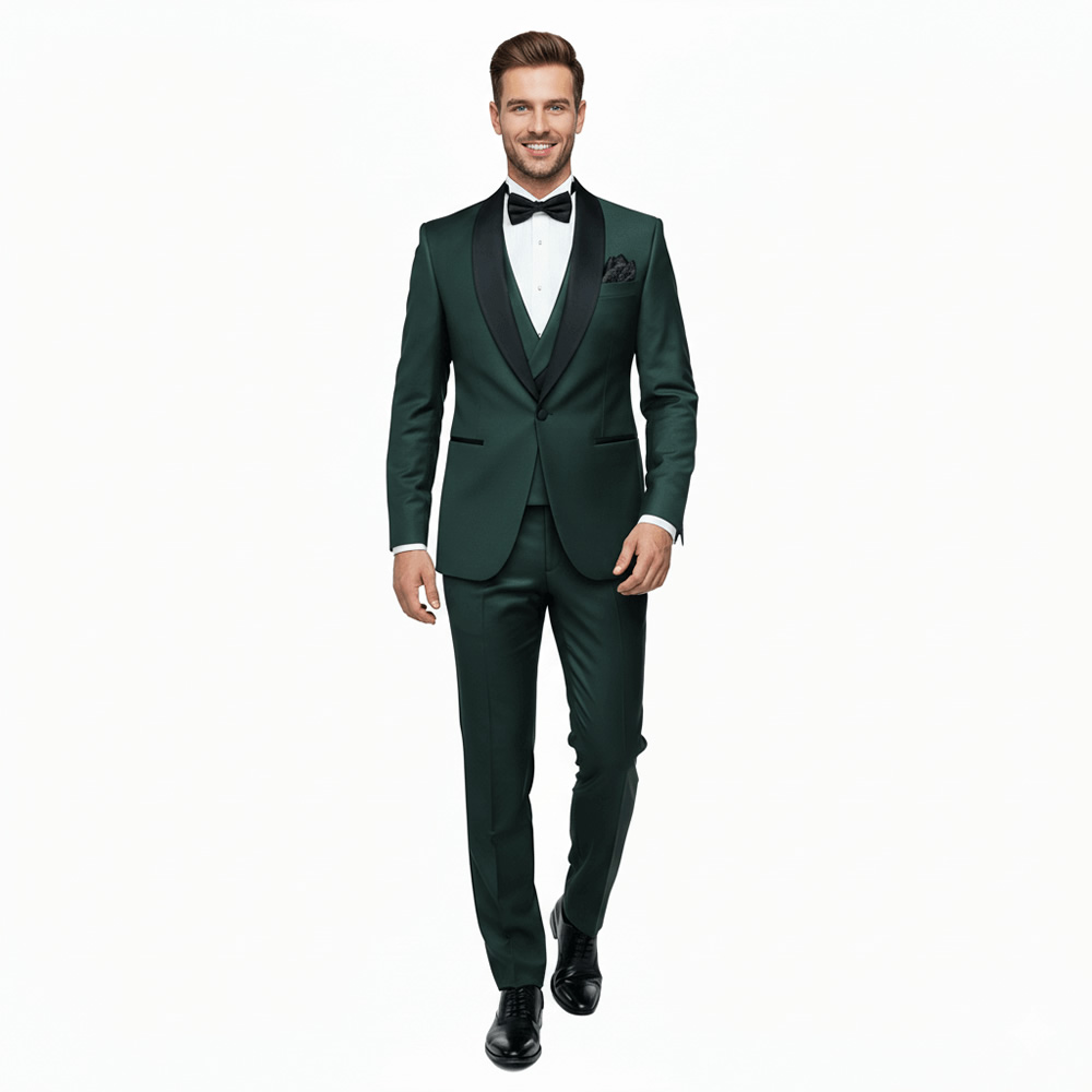 This Classic Green Tuxedo with Black Shawl Lapel is an exemplary model of elegant attire that enhances your persona at any formal event. Its distinctive feature is the deep, classic green color that exudes grandeur and sophistication. The black satin shawl lapel adds a new level of elegance, while the high-quality fabric provides comfort throughout the night. You can complete your look by pairing this tuxedo with a white dress shirt and a bow tie.