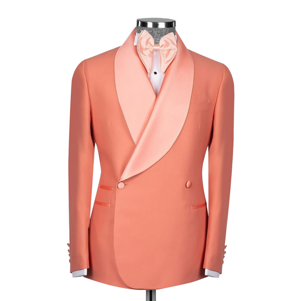 Our Coral Pink Tuxedo is a chic option for any special occasion, so make a statement with it. With its striking color and timeless style, this tuxedo will make you stand out and seem put together. This tuxedo is a wardrobe essential that is ideal for weddings, parties, or any other occasion where you wish to make an impression.