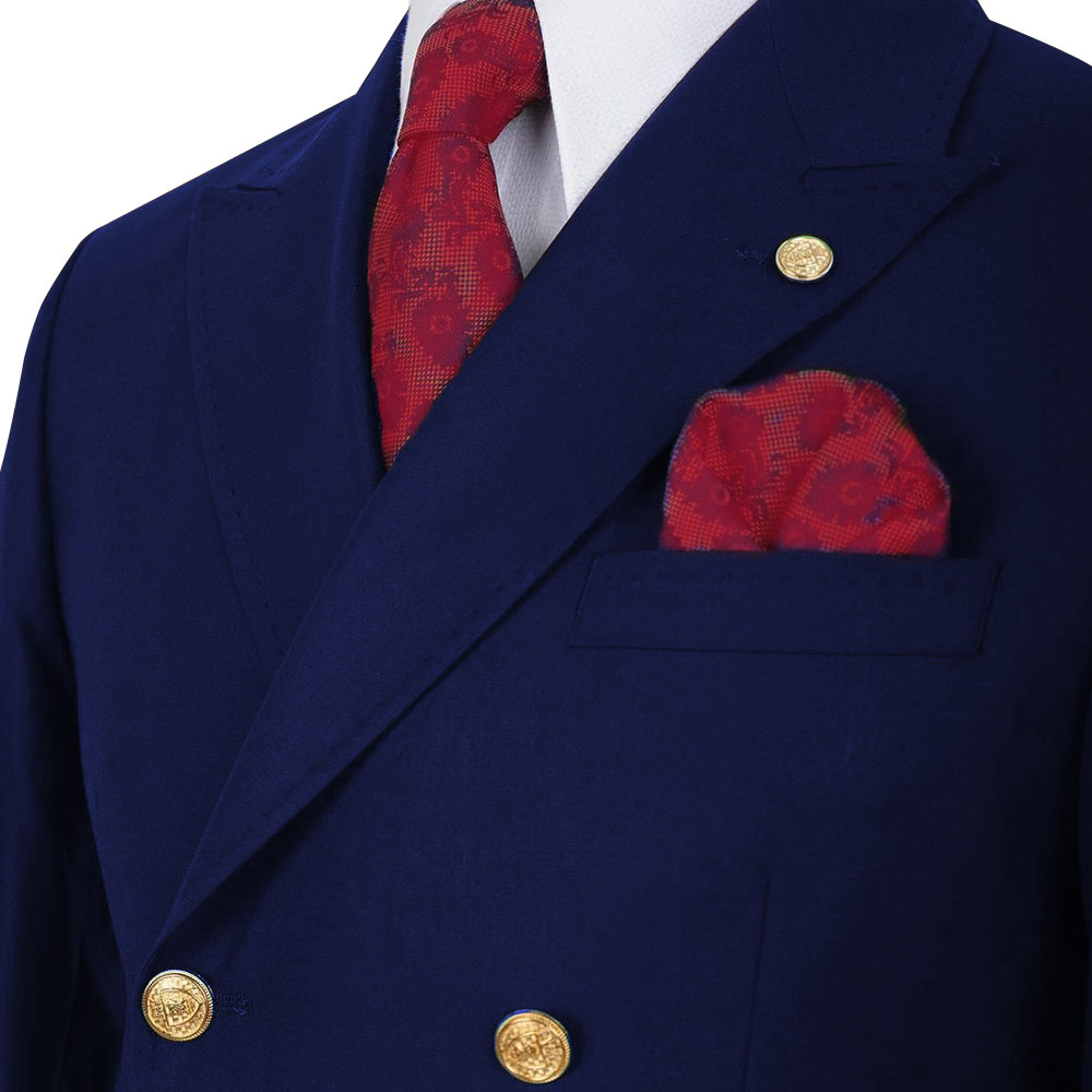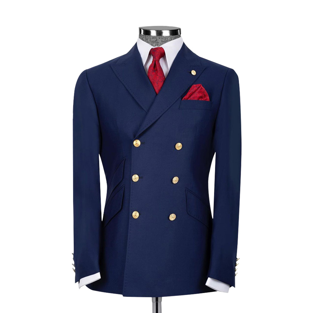 Get ready to turn heads and steal the show with our custom dark navy double breasted suit ! Crafted from luxurious 120s wool and lined with silky smoothness, this all-season suit is your ticket to looking dashing year-round. The jacket’s dark navy peak lapel screams sophistication, while the three diagonal pockets and classic double-breasted design keep you looking sharp and stylish. Get ready to be the star of the show!