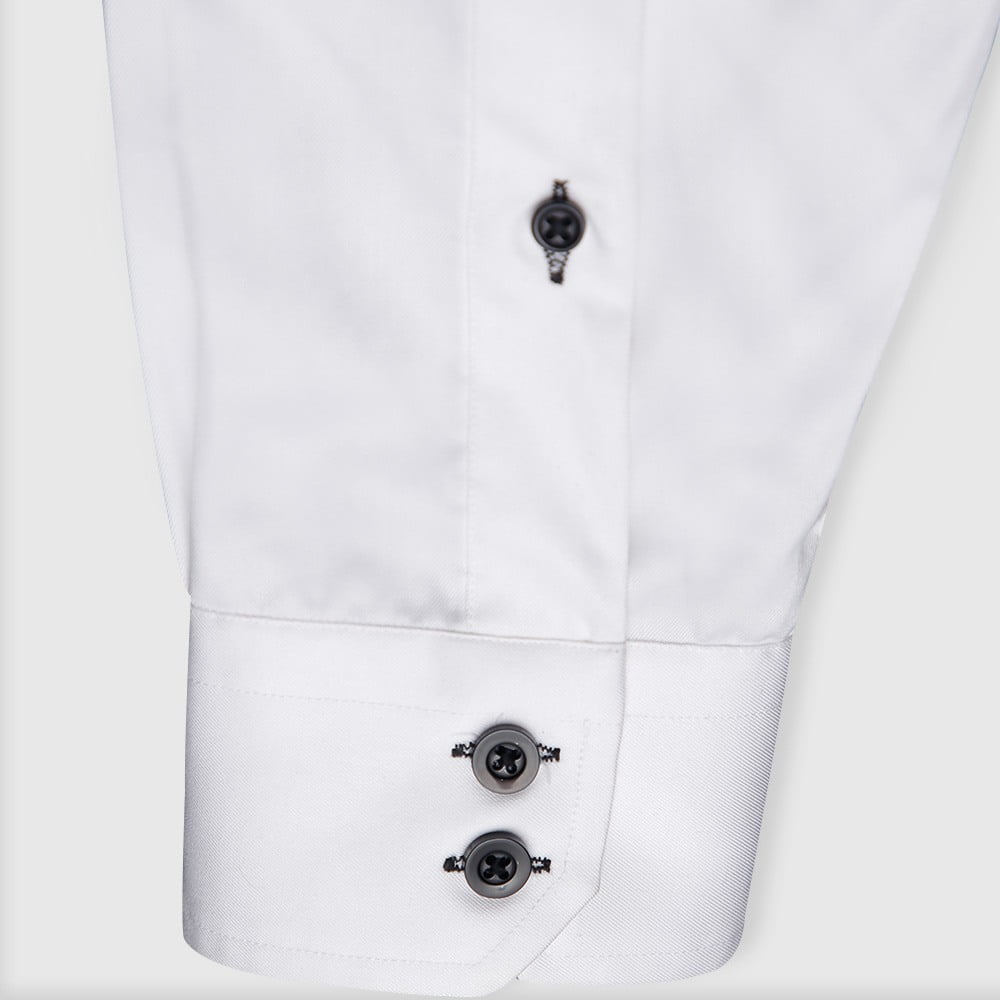 Introducing the Bespoke Slim Fit Luxury White Shirt with Inside Black Trimming, a perfect fusion of sophistication and contemporary style. Immerse yourself in the world of bespoke tailoring with this meticulously crafted shirt.