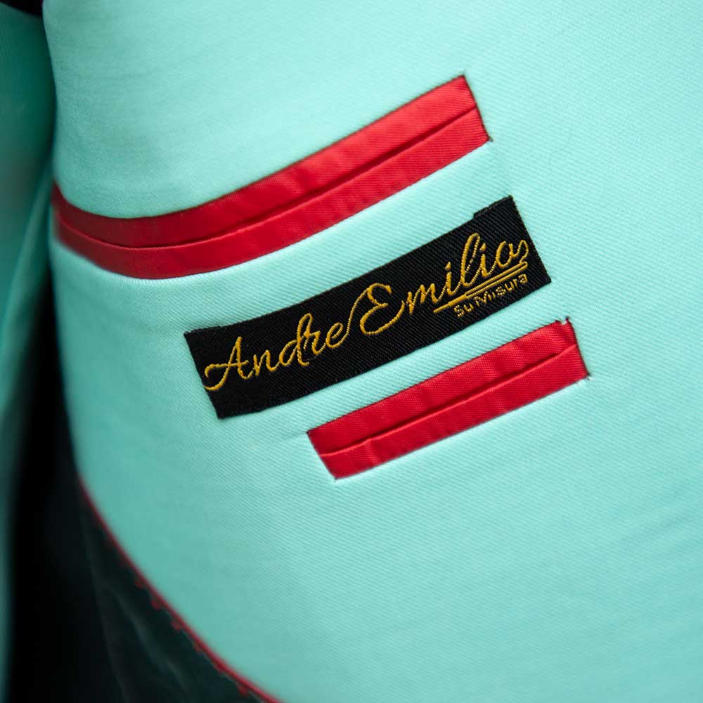 This tuxedo isn’t just a stunning design – it’s a creation inspired by our customer’s vision. Last year, one of our clients came to us with a unique request: he wanted a tuxedo to match his shoes. With his guidance, we crafted this striking Grey and Green Tuxedo, combining his vision with Andre Emilio’s tailoring expertise. The result? A one-of-a-kind masterpiece that perfectly balances bold style and bespoke craftsmanship.