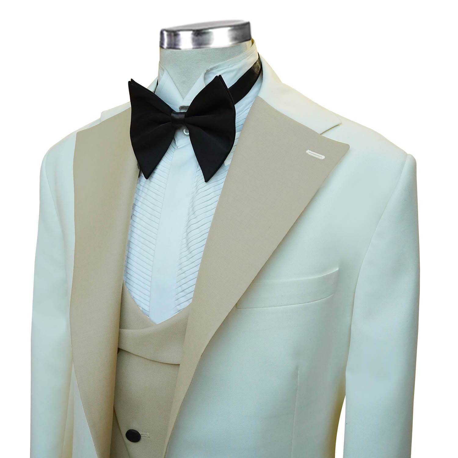 Make every moment memorable with our Ivory and Beige tuxedo. This suit blends classic charm with a modern vibe think a sleek beige jacket matched with crisp ivory trousers.