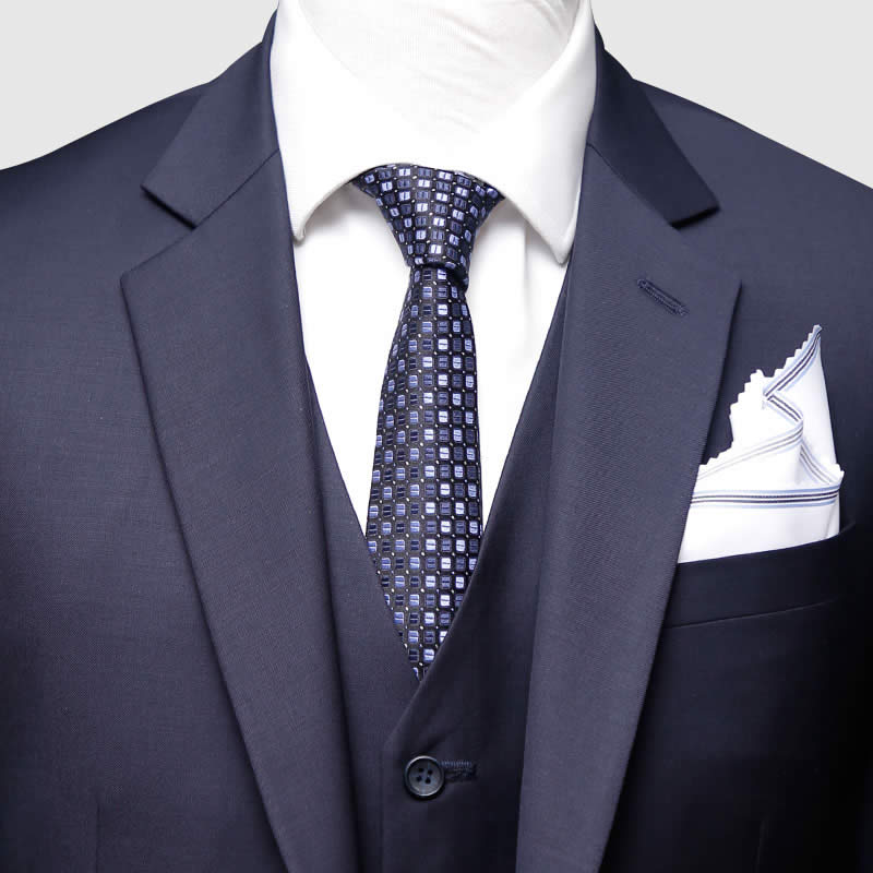 Take a savvy approach to weekday tailoring with Andre Emilio’s modern fit navy 3-piece suit