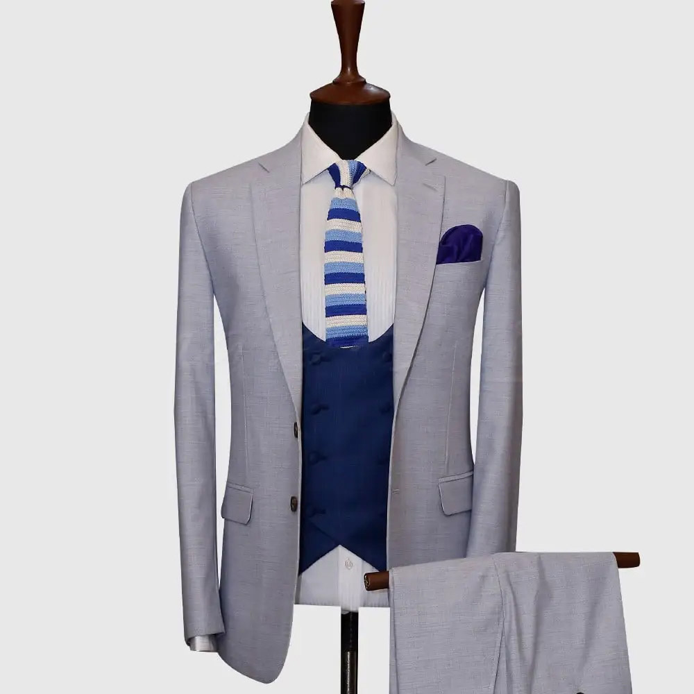 Looking dapper has never been easier, thanks to our suit in a cool shade of grey. Complete with V-Shape 5 button waistcoat, creating a sleek and contemporary look while still allowing for freedom of movement for your comfort.