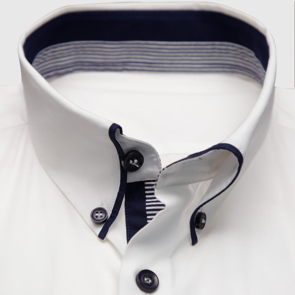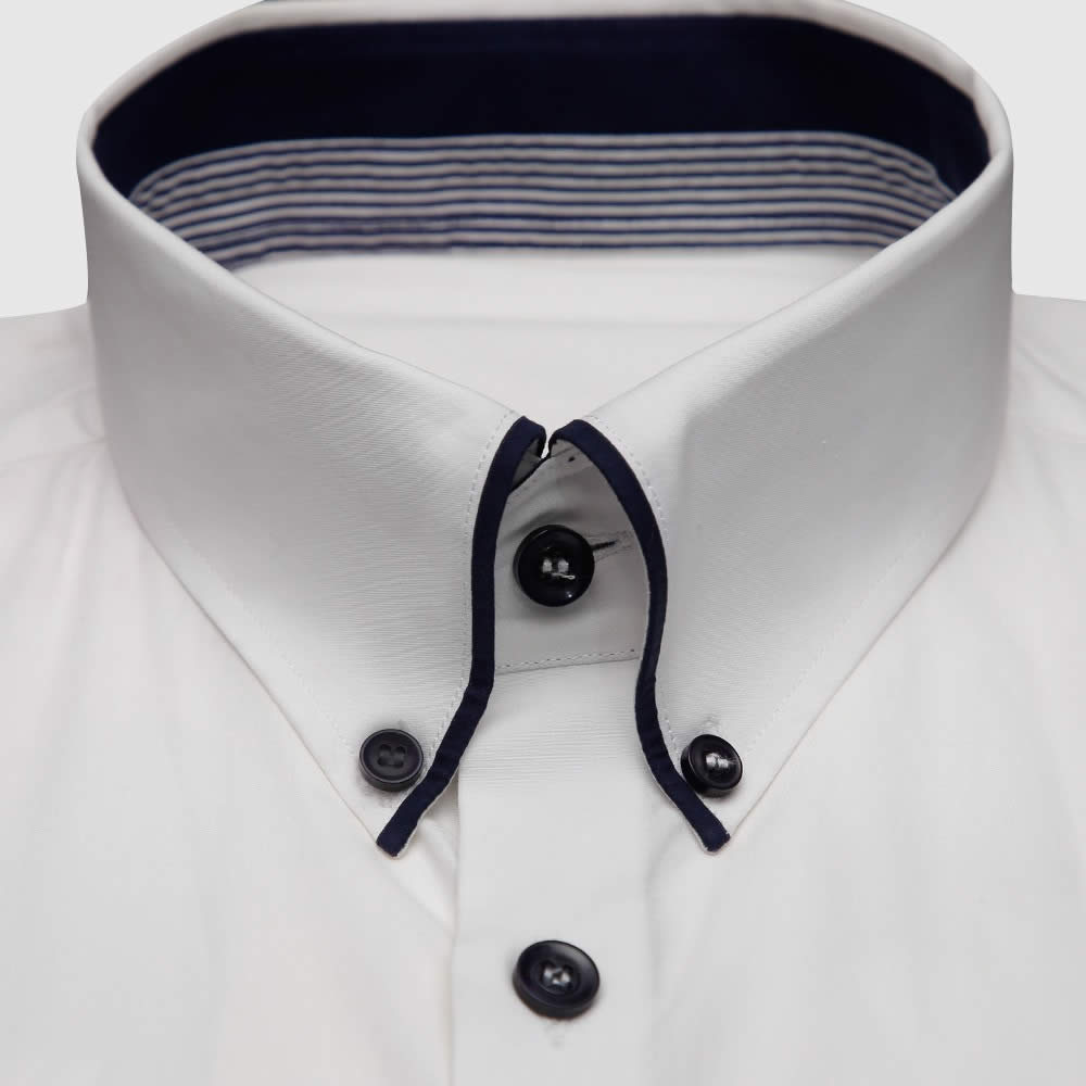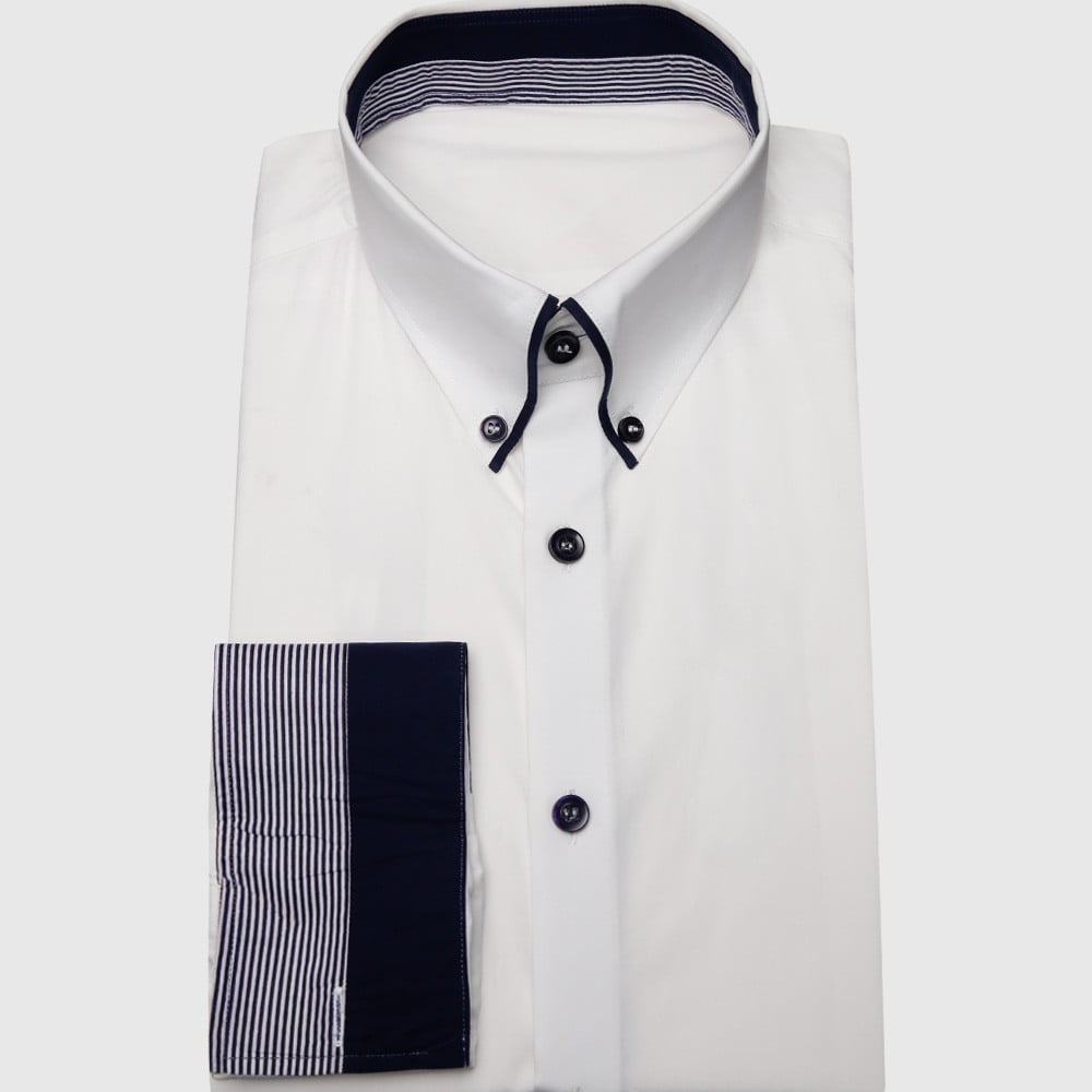 100% cotton white formal shirt with a widespread collar, full sleeves, and white matching buttons.