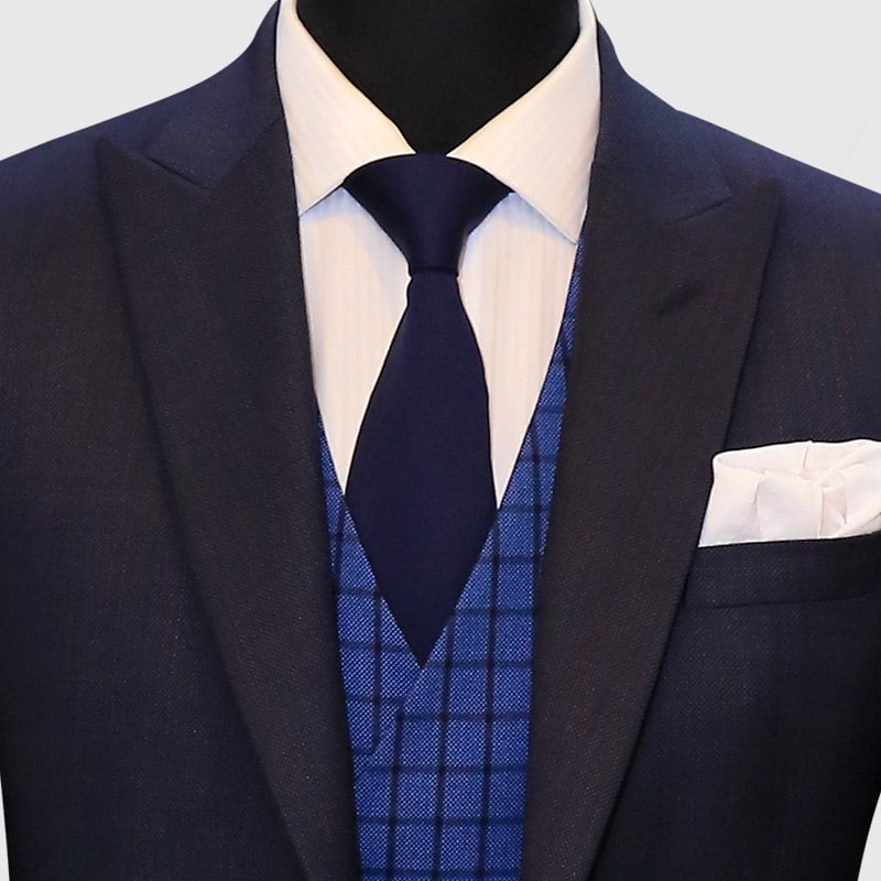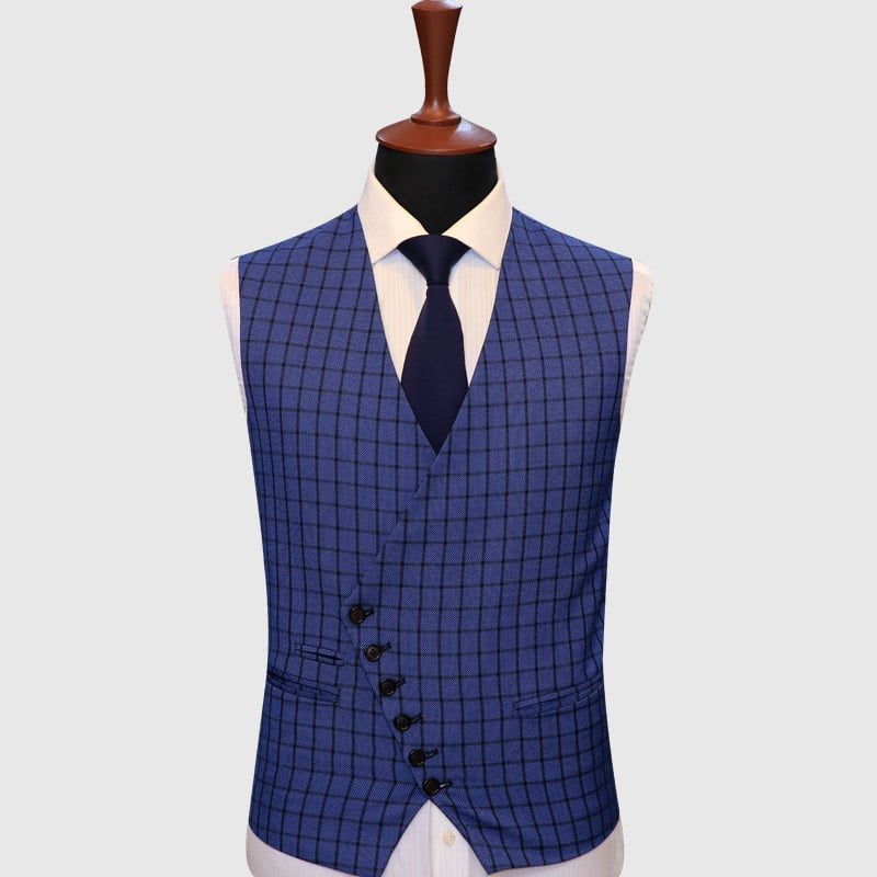 The bespoke textured grey suit is the epitome of luxury. Our expert designers have combined cashmere with our top-selling Italian tropical Blue Suit, featuring a Check Waistcoat, to create a truly sophisticated and refined piece.