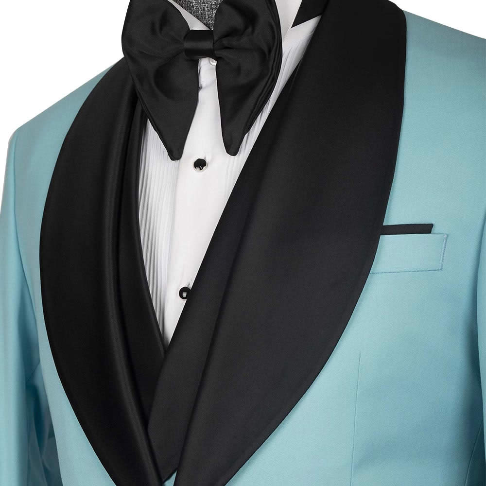 Make a bold style statement with the Custom Sky Blue Tuxedo with Black Lapel. This exceptional ensemble merges classic sophistication with a contemporary twist. The sky blue hue infuses a refreshing vibrancy, while the sleek black lapel adds a touch of modern elegance. Meticulously crafted to perfection, this tuxedo guarantees a flawless fit and impeccable silhouette, tailored to your exact measurements. The premium quality fabric ensures both comfort and durability, allowing you to move with ease and confidence.