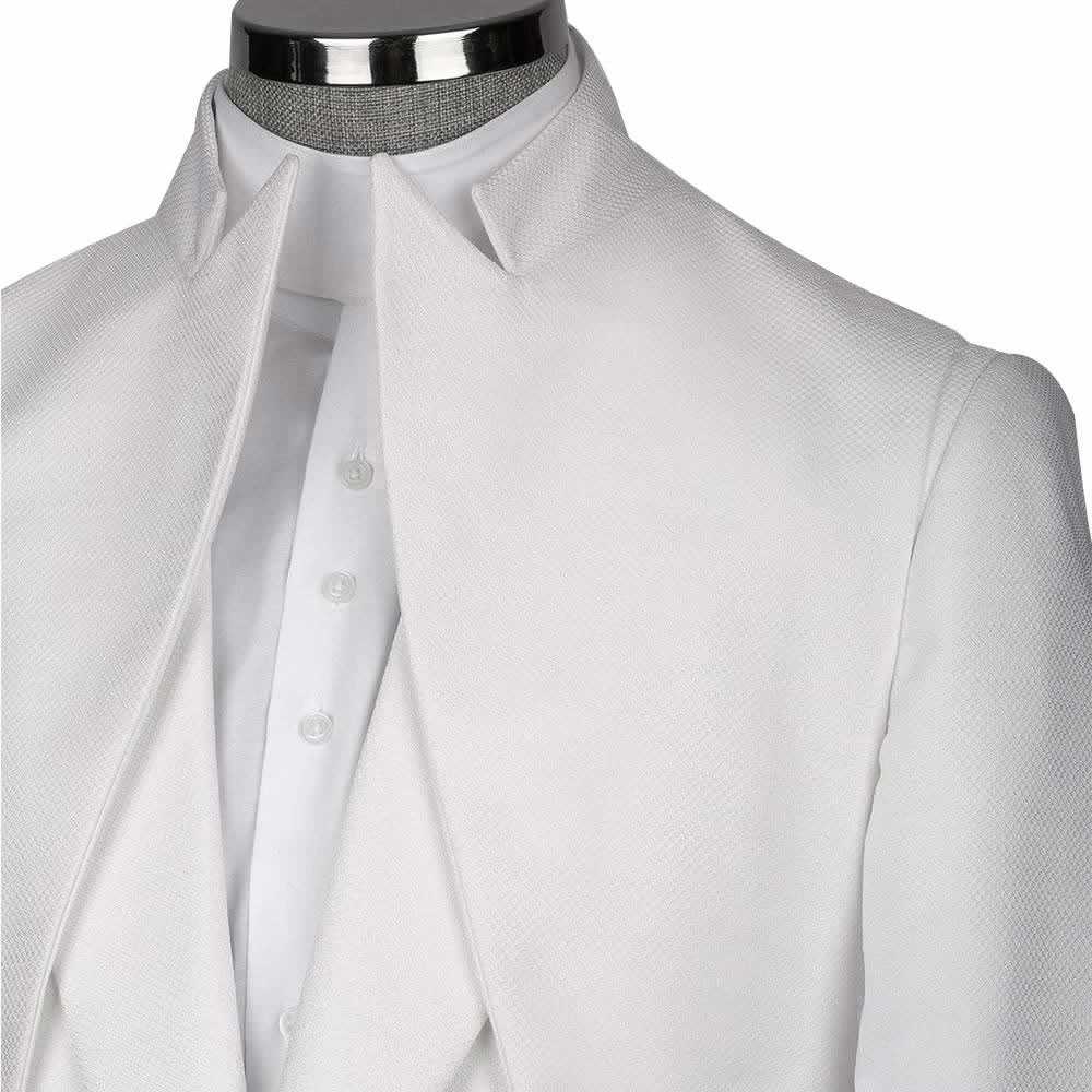The custom texture white tuxedo suit will be hand-stitched to your measurements. Made from Italian fabrics, using half-canvas construction, the textured tuxedo is guaranteed to be a staple in your wardrobe for years to come. The custom fit and exquisite fabric will accentuate your personality, while the tuxedo’s black lapel adds a touch of sophistication to an already classic menswear piece.