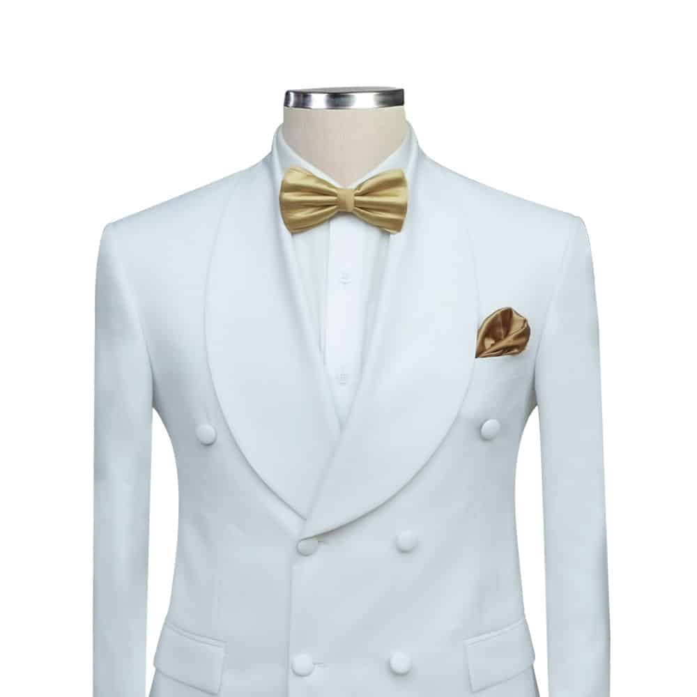 Experience the luxury of bespoke tailoring with our White Double Breasted Tuxedo. Every stitch and detail is tailored with precision, resulting in a tuxedo that fits like a second skin. Feel the difference that a tailor-made suit makes, enveloping you in comfort while making heads turn in admiration.